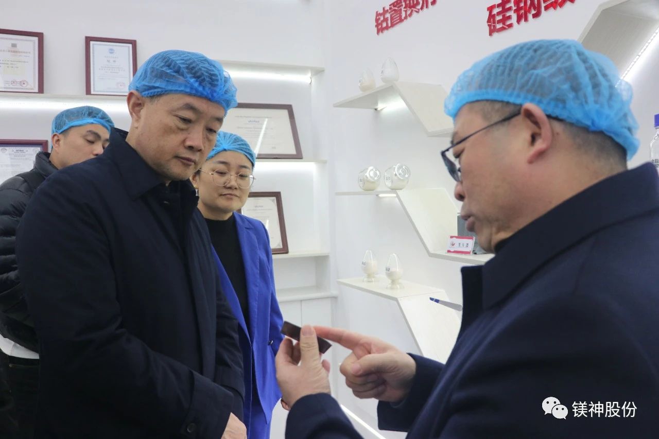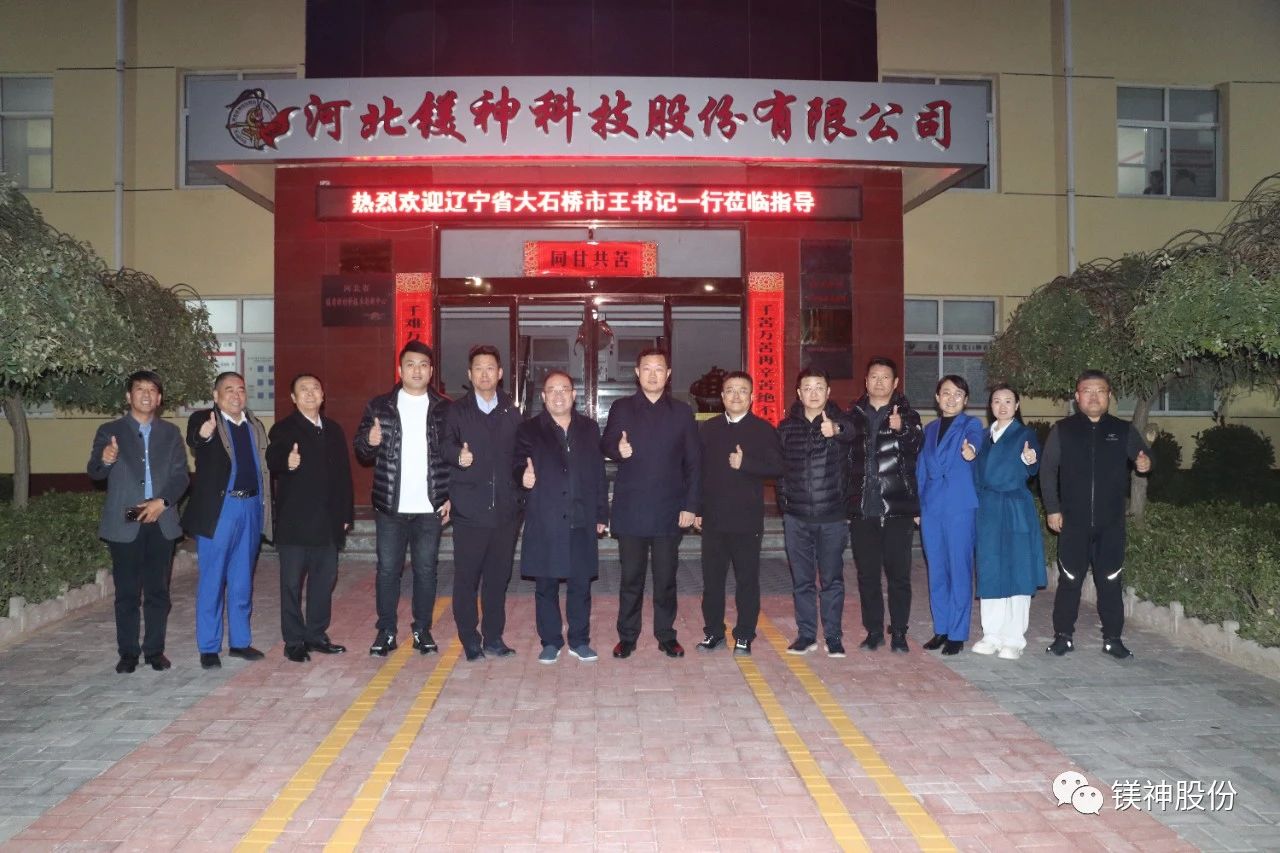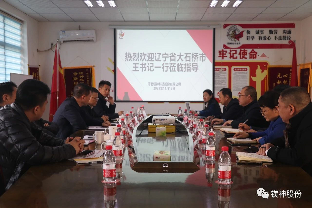 11月13日,遼寧省大石橋市市委書記王殿豐一行蒞臨河北鎂神科技股份有限公司(以下簡稱“鎂神科技”),鎂神科技董事長孫文帶領(lǐng)公司高管熱情接待,并陪同參觀了榮譽(yù)室、研發(fā)中心、生產(chǎn)車間和倉庫。此次交流旨在加強(qiáng)兩地企業(yè)間的合作,推動產(chǎn)業(yè)發(fā)展和技術(shù)創(chuàng)新。
