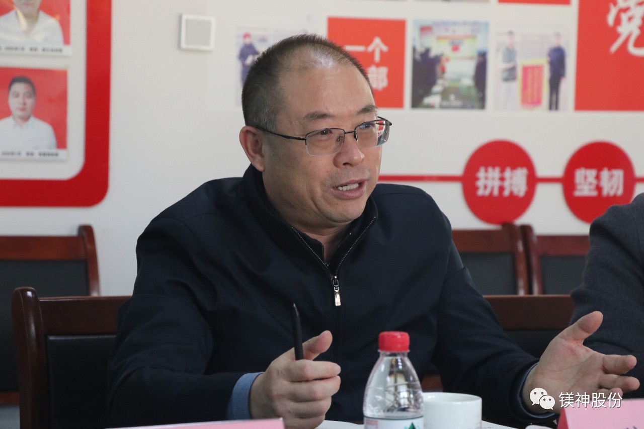 參觀結(jié)束后,王書記一行與鎂神科技董事長孫文及高管進(jìn)行了座談交流。雙方就加強(qiáng)企業(yè)間合作、促進(jìn)技術(shù)創(chuàng)新、推動完善鎂質(zhì)新材料產(chǎn)業(yè)鏈等方面進(jìn)行了深入探討。