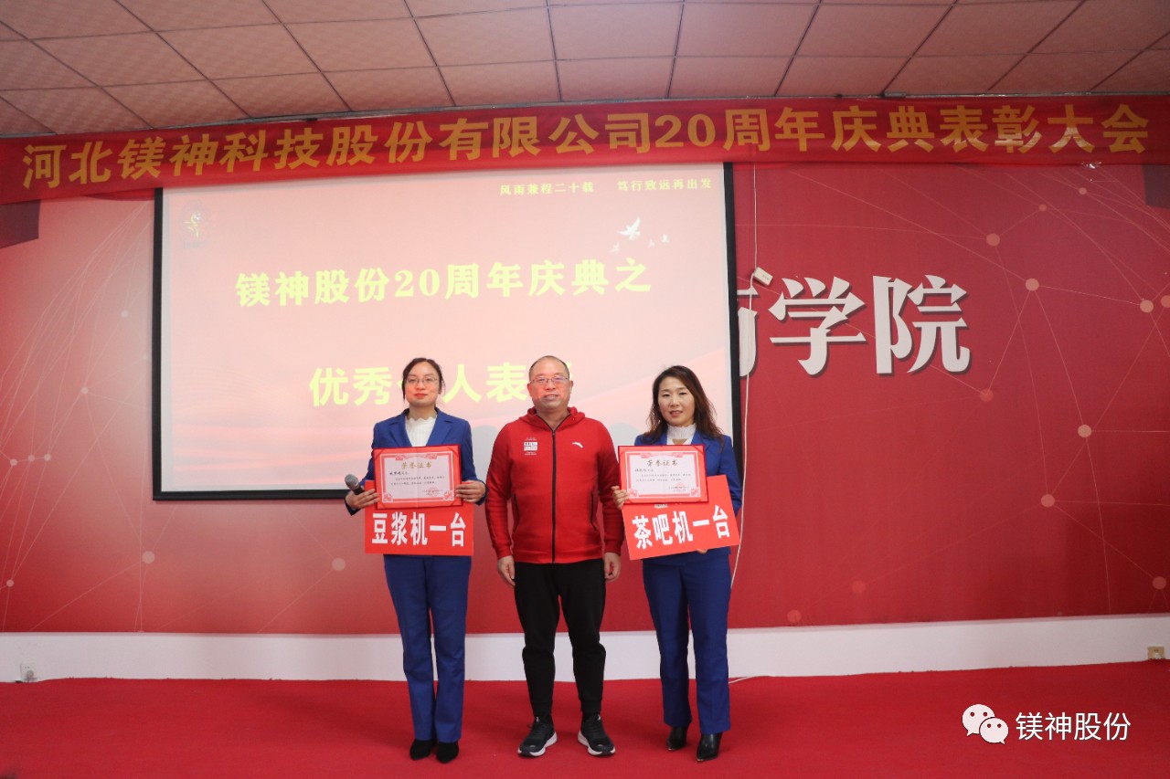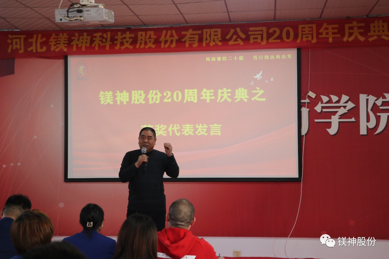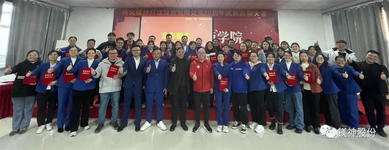 2023年10月,我們先后舉行了老員工表彰大會(huì)、“創(chuàng)新引領(lǐng)發(fā)展,應(yīng)用贏得未來(lái)”中國(guó)鎂鹽協(xié)會(huì)技術(shù)論壇暨鎂神科技20周年慶典、“合作共贏、攜手未來(lái)”河北鎂神科技股份有限公司20周年慶典暨大客戶交流活動(dòng)。