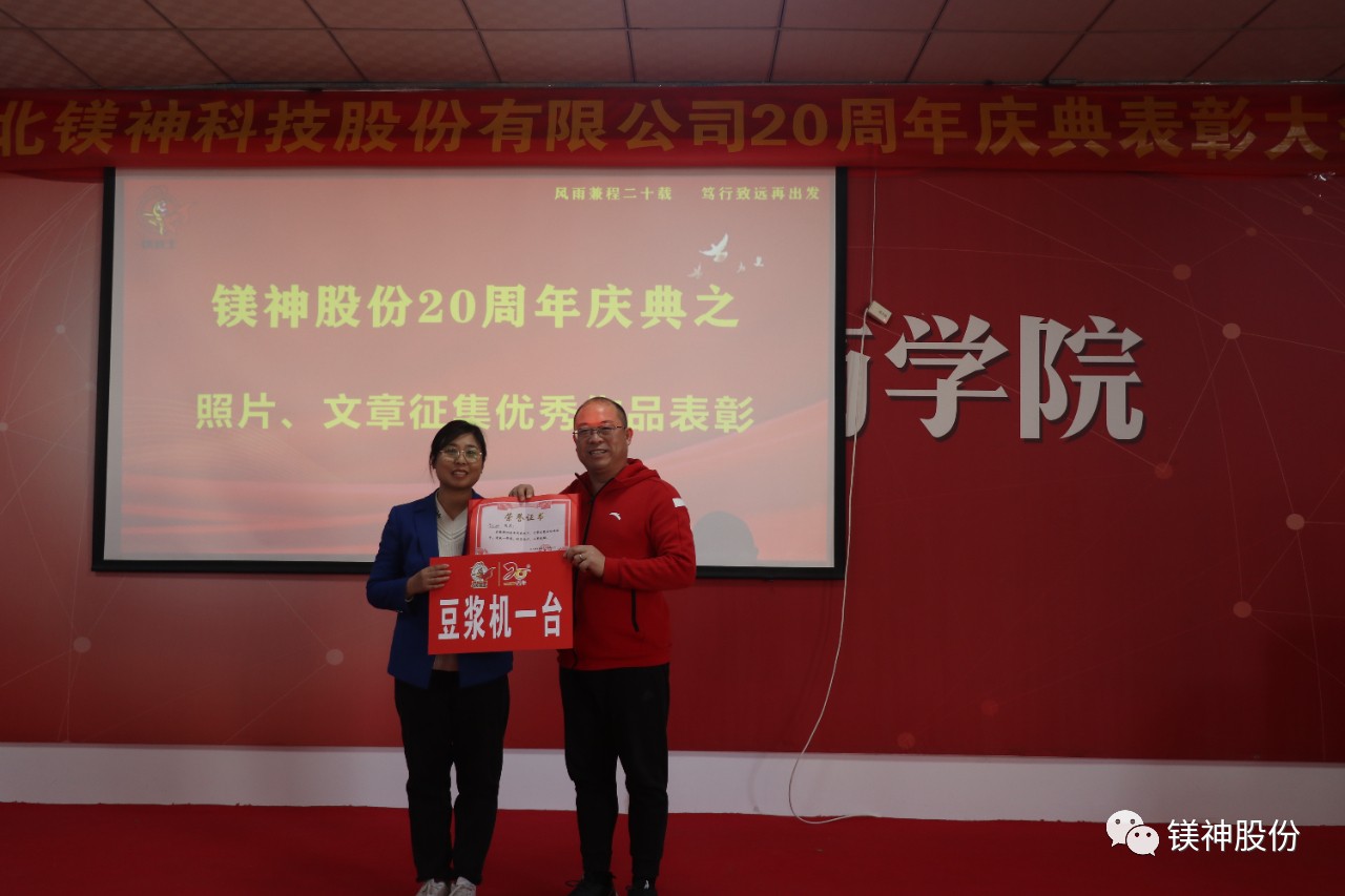 與慶典表彰大會(huì)一同舉辦的還有二十周年慶相關(guān)征文活動(dòng)頒獎(jiǎng)典禮。海南公司員工李紅嬌的作品“獻(xiàn)給鎂神二十周年”拔得頭籌。