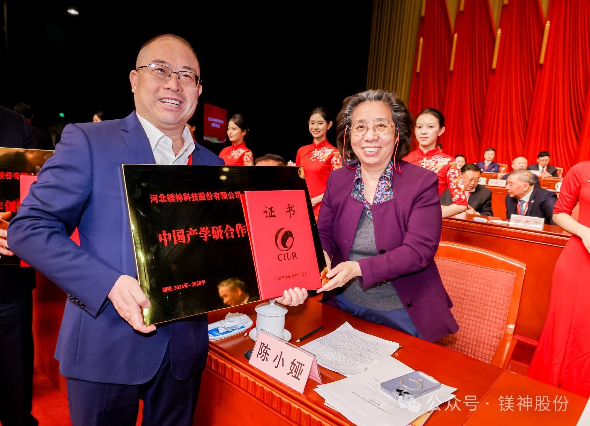 3月17日,以“產(chǎn)學(xué)研聚焦:新動能、新模式、新產(chǎn)業(yè)”為主題的第十五屆中國產(chǎn)學(xué)研合作創(chuàng)新大會在北京會議中心隆重召開,河北鎂神科技股份有限公司董事長孫文受邀出席。會議表彰了2023年在產(chǎn)學(xué)研深度融合方面做出貢獻(xiàn)的先進(jìn)單位和個人,河北鎂神科技股份有限公司榮獲“中國產(chǎn)學(xué)研合作創(chuàng)新示范企業(yè)”,中國產(chǎn)學(xué)研合作促進(jìn)會特聘專家、科技部原副部長陳小婭為我司頒發(fā)榮譽(yù)證書。